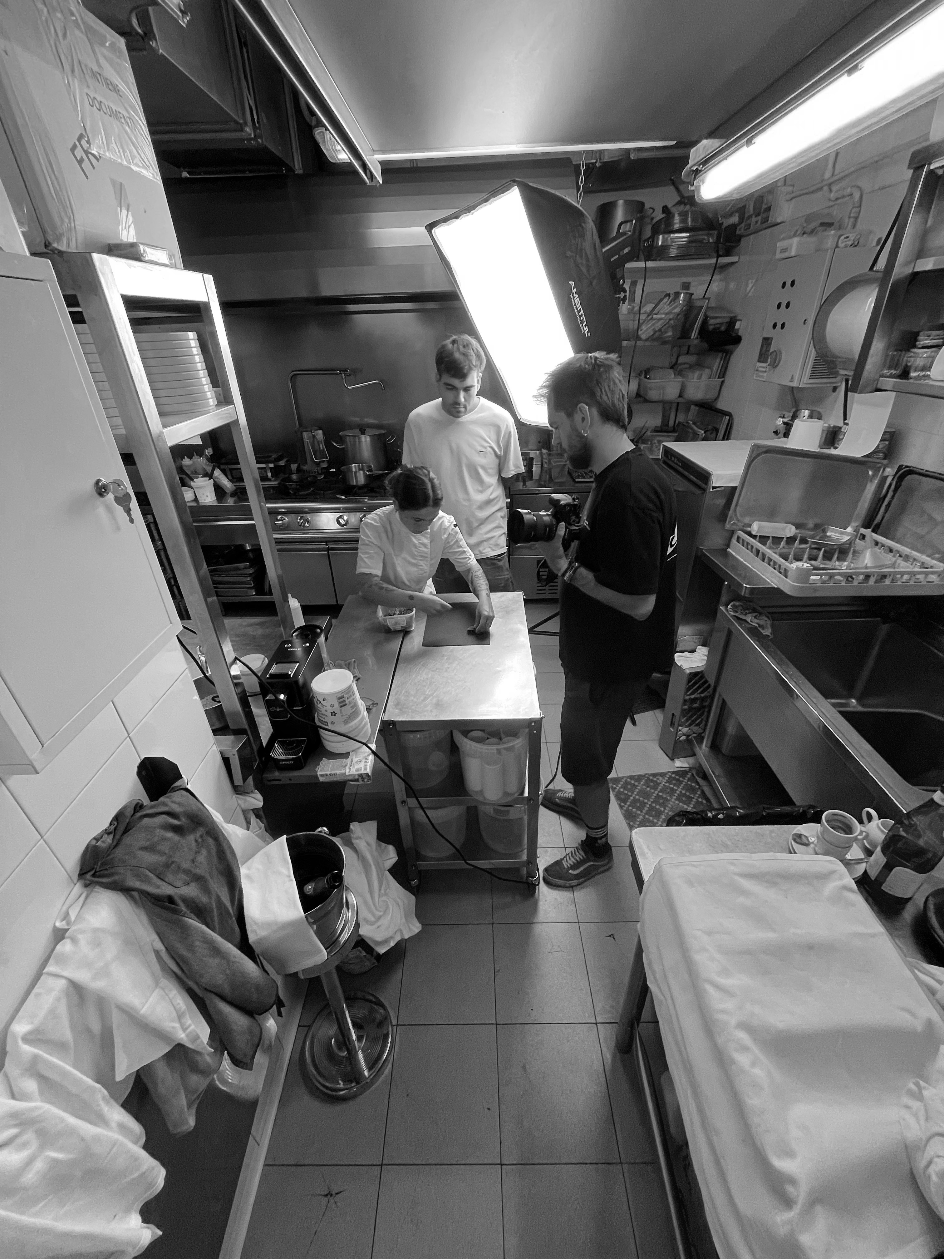 Nulla esiste oltre ciò che è inquadrato, tutto ciò che sta intorno è finalizzato alla sua creazione. Il lavoro si concentra sulla materia prima come soggetto principale, trattata nella sua dimensione più essenziale ed estetica anche prima di essere manipolata. Poi c’è il processo di preparazione, che trasforma la materia in abbinamenti e cotture ad arte e infine il piatto finito, con la sua composizione e la sua visione olfattiva. Tutte queste componenti vengono rappresentate ciascuna con rigore estetico e scelte definite.